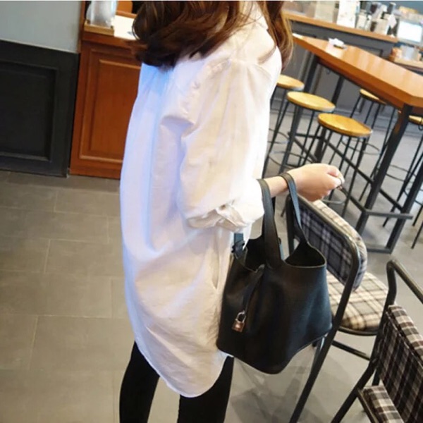 大碼襯衫女中長款胖mm胖人200斤寬松韓版上班工作職業無扣襯衣秋