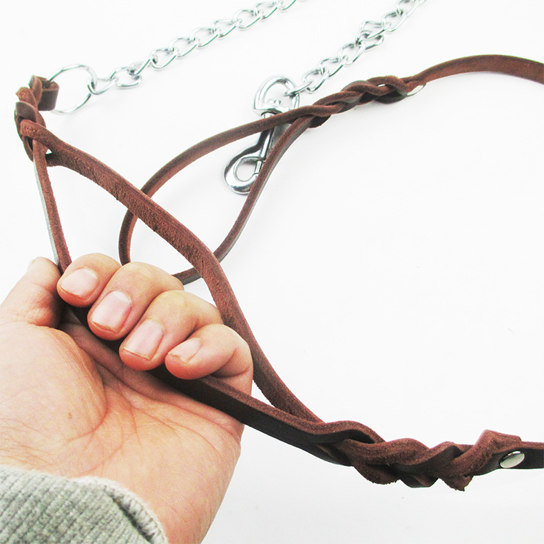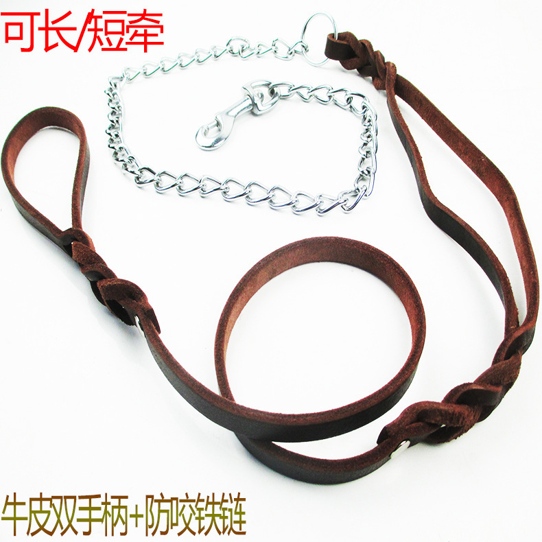 產品名稱:牛皮編花雙手柄+鐵鏈防咬