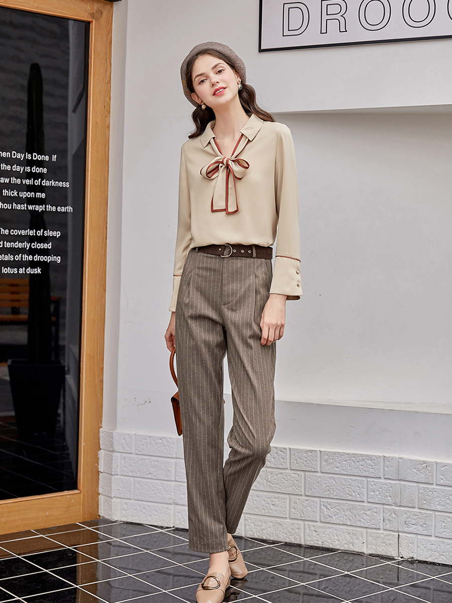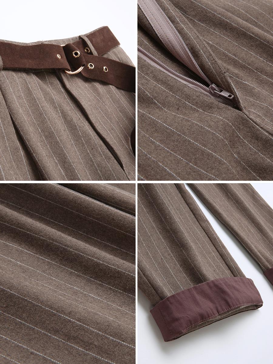 MG小象褲子女秋冬2018新款寬松顯瘦chic直筒褲復古條紋西裝褲子潮