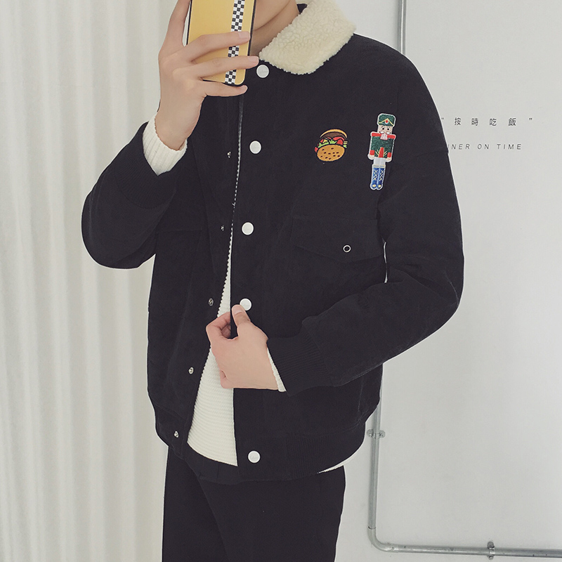 / 男裝新款卡通貼布韓版加厚男士短款寬松棉衣外套潮