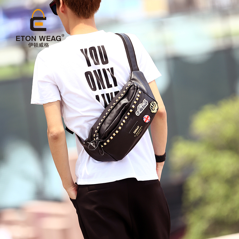 / 原創新款胸包韓版潮流男包英倫個性徽章胸包時尚腰包小包小背包