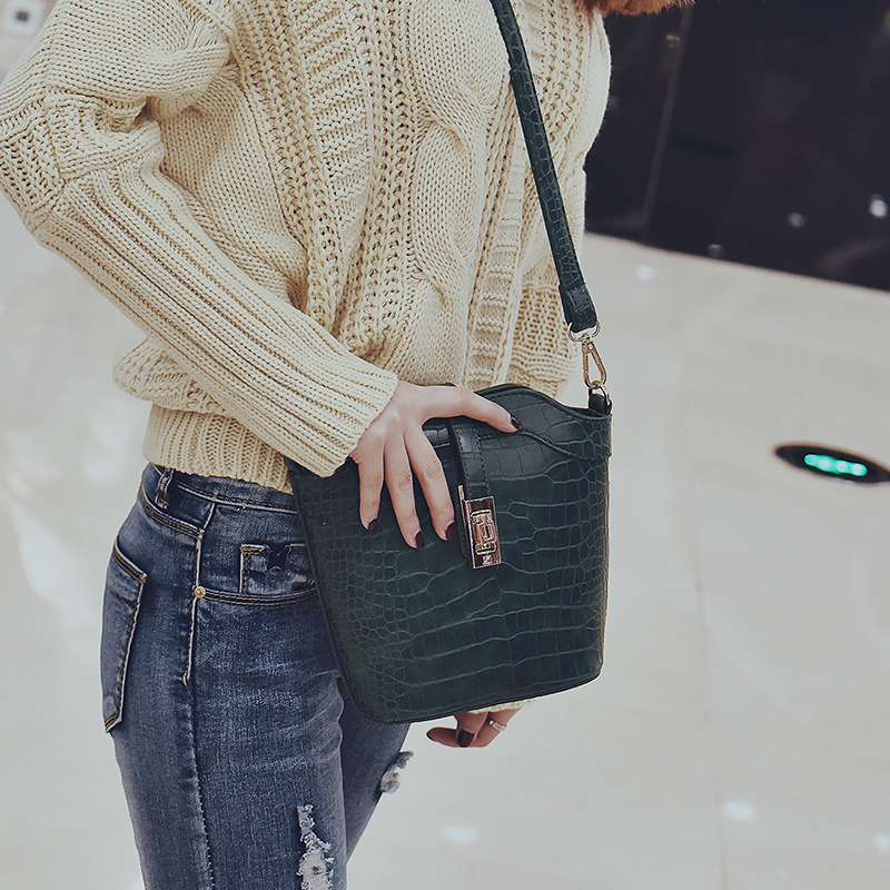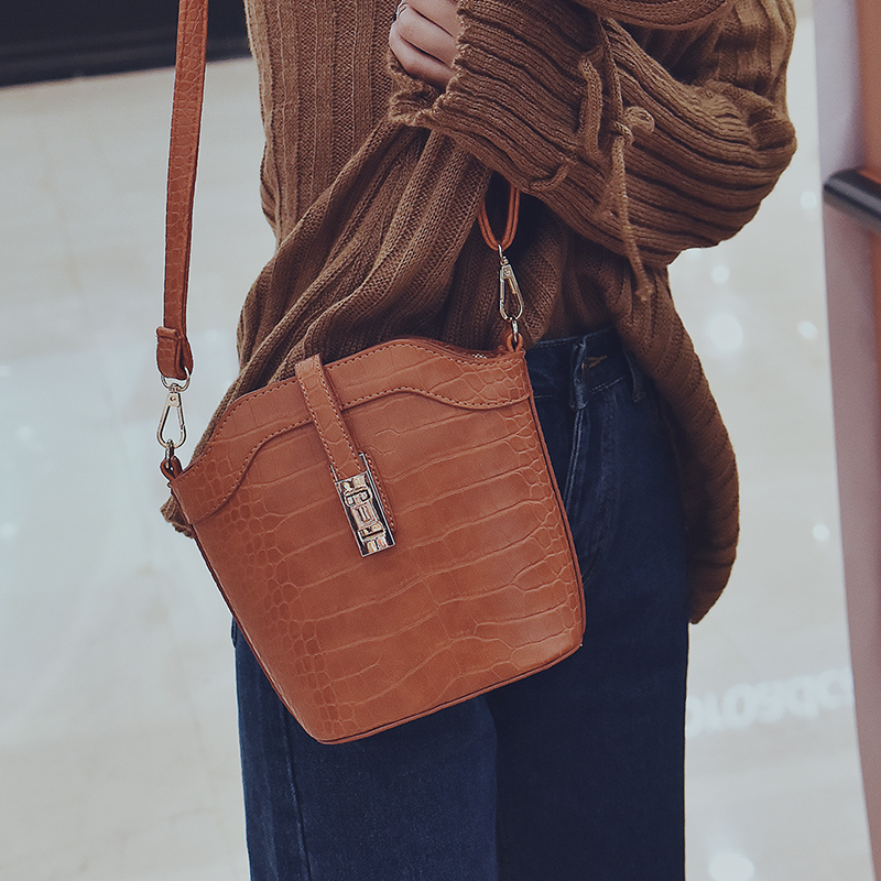 / 包包女新款潮鱷魚紋迷你水桶包韓版復古單肩女包百搭斜挎小包
