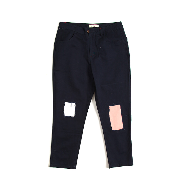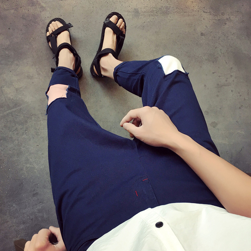 / 新款日韓原創貼布撞色韓版修身小直腳男九分褲