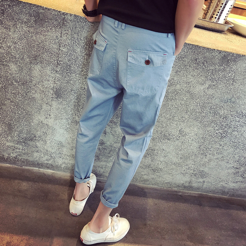 新款日韓原創貼布撞色韓版修身小直腳男九分褲