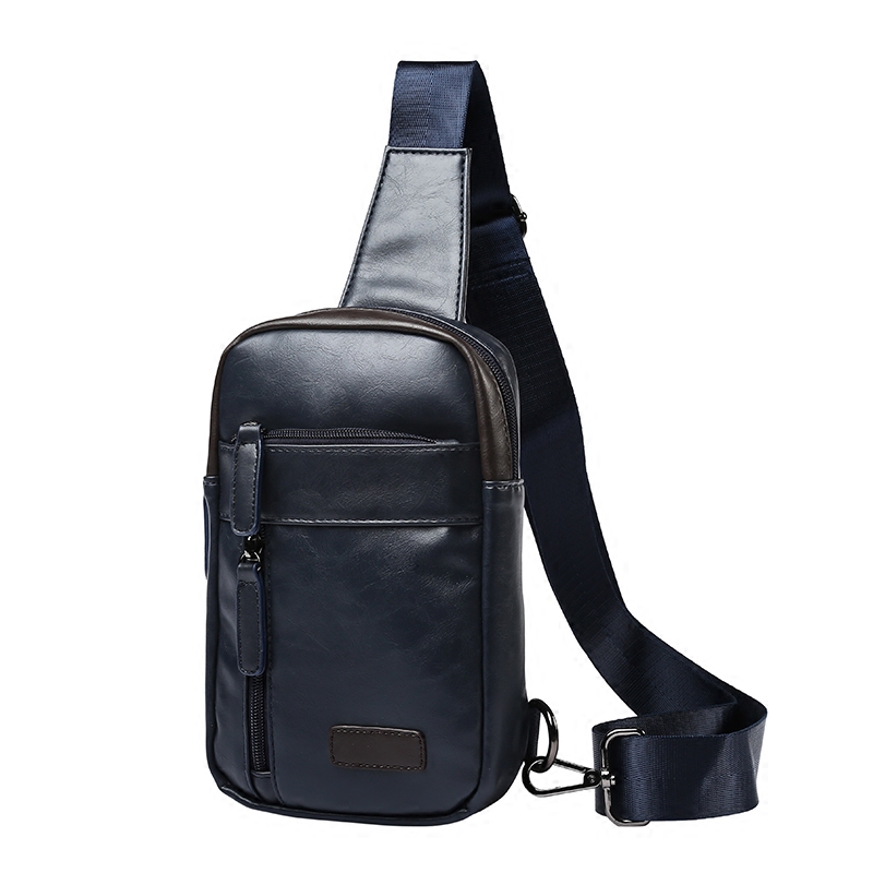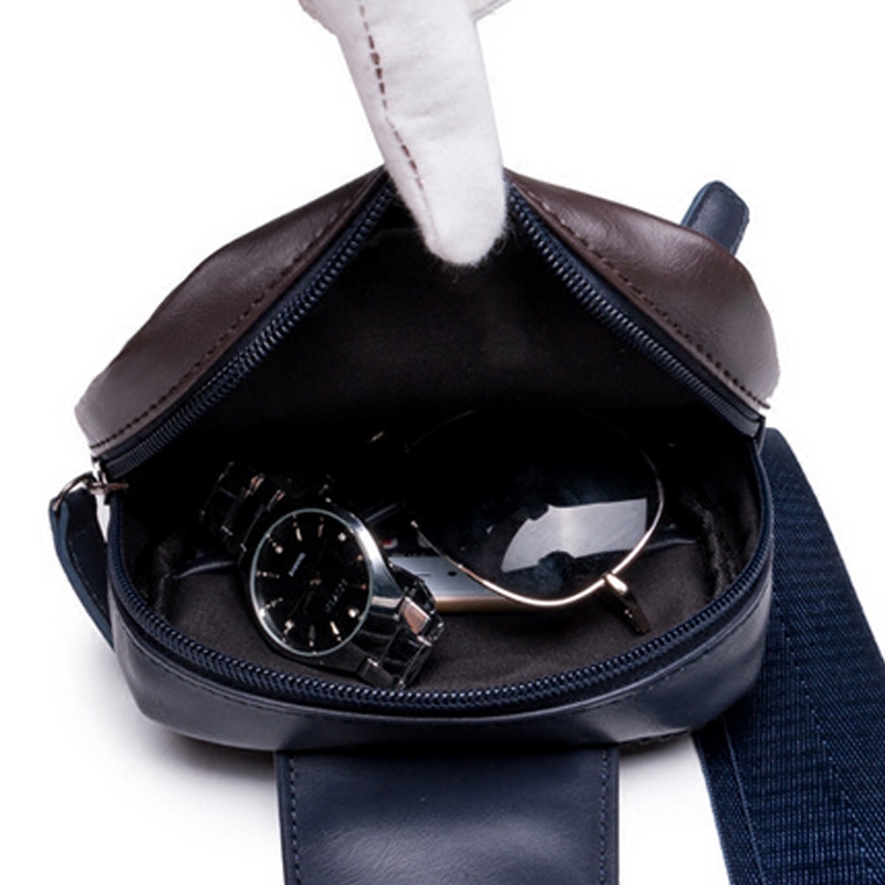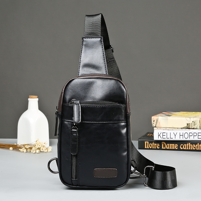/ 新款英倫街頭潮流單肩包男撞色軟皮斜挎包肩挎包男款胸包潮包