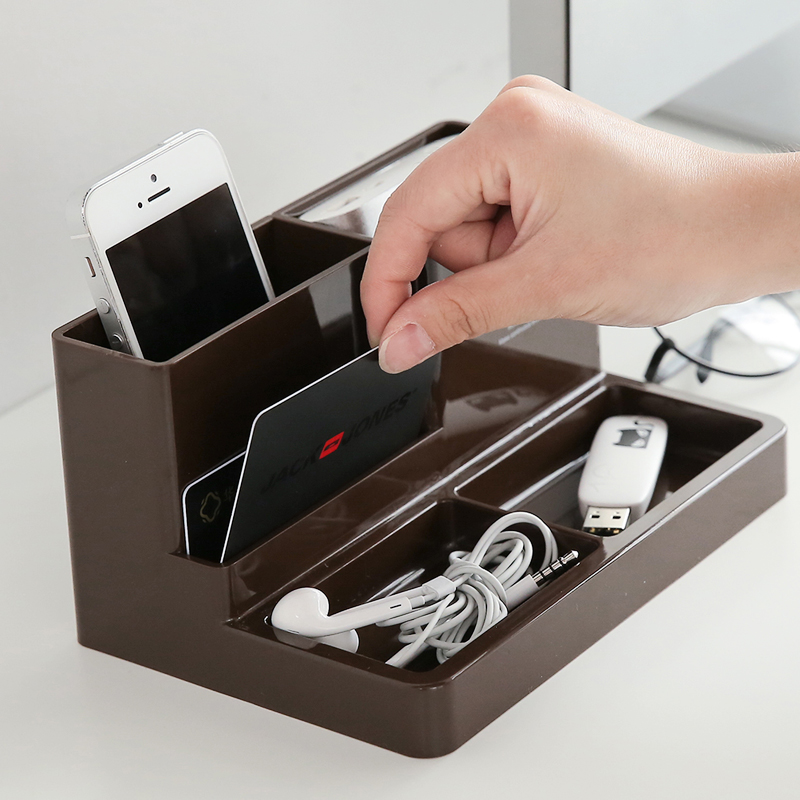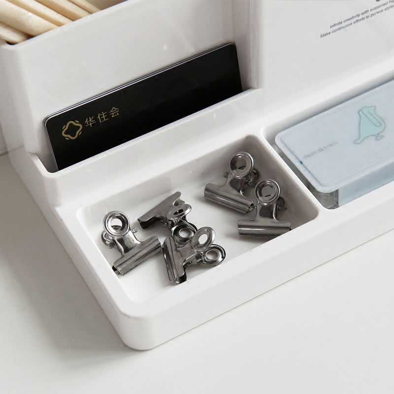 得力辦公用品9115塑料桌面筆筒收納名片盒功能多功能筆筒
