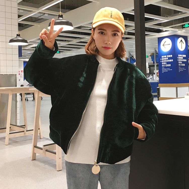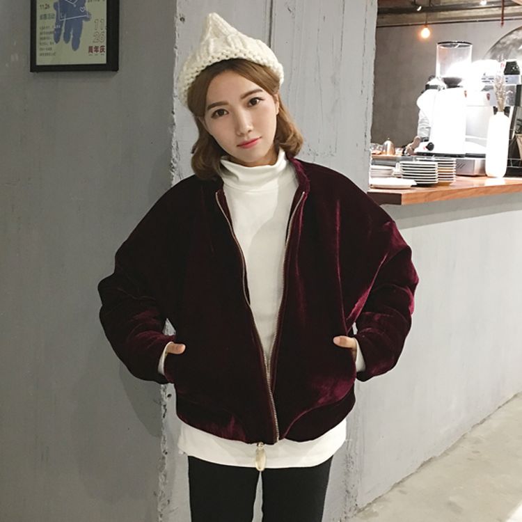 / 韓國冬款復古氣質拉鏈修身顯瘦金絲絨短款夾棉加厚長袖外套女