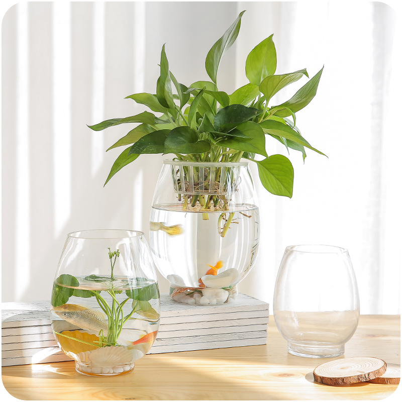 / 透明玻璃綠蘿花瓶恐龍蛋型水培花瓶瓶子富貴竹水養植物容器干花盆