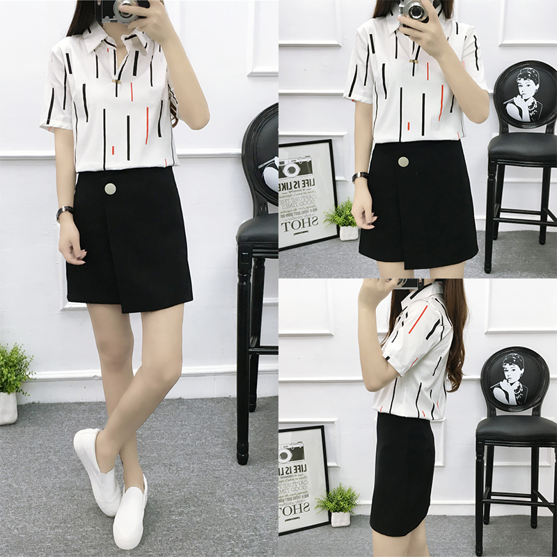 / 白色襯衫女2017夏裝休閑寬松百搭大碼上衣中長款職業短袖雪紡襯衣