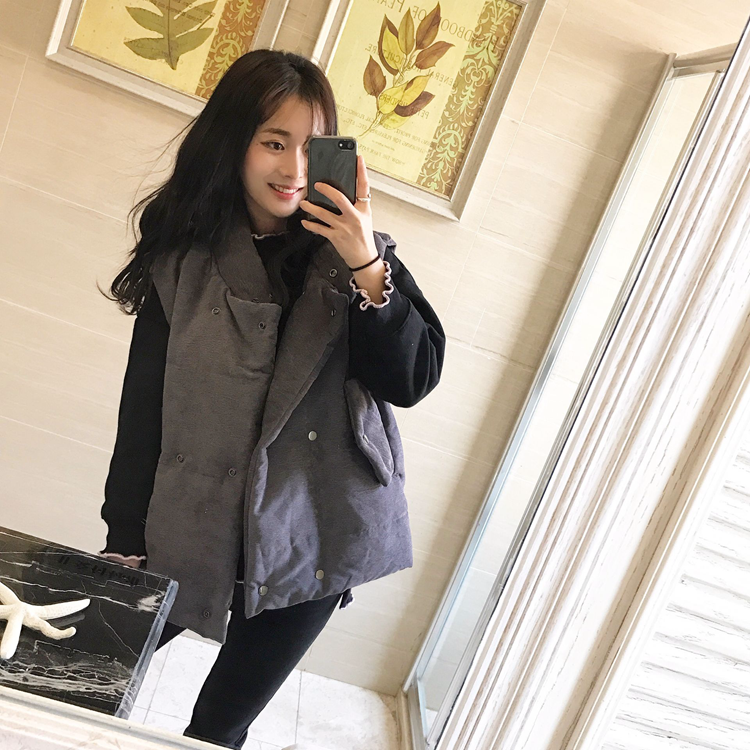 / 秋冬韓版燈芯絨上衣馬夾寬松純色口袋學生棉服馬甲外套女裝