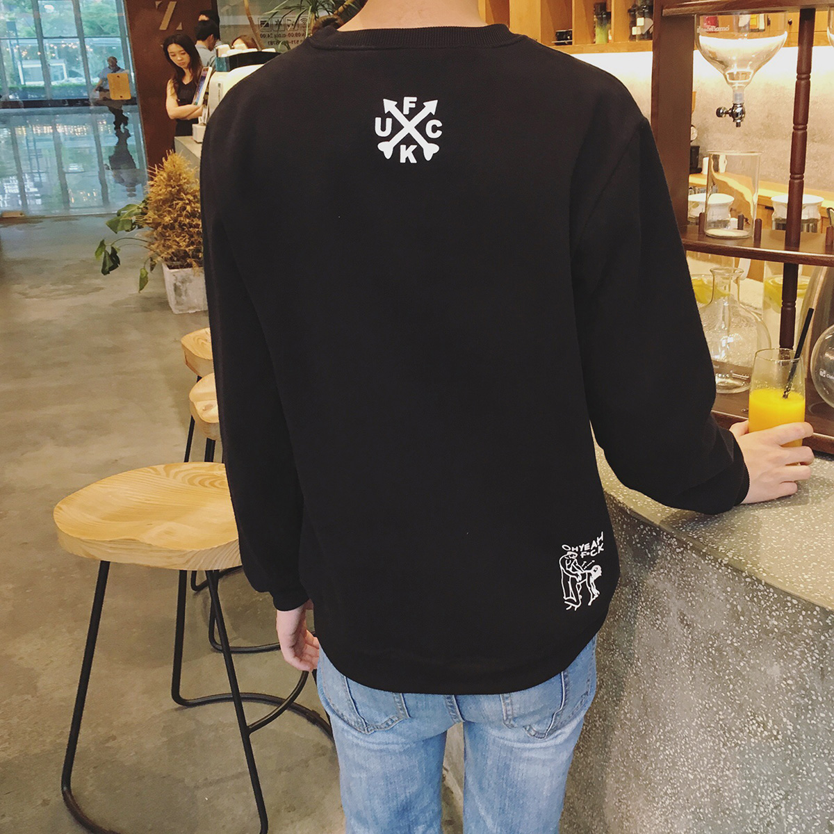 / 秋季新款圓領字母印花套頭韓版百搭寬松男士衛衣