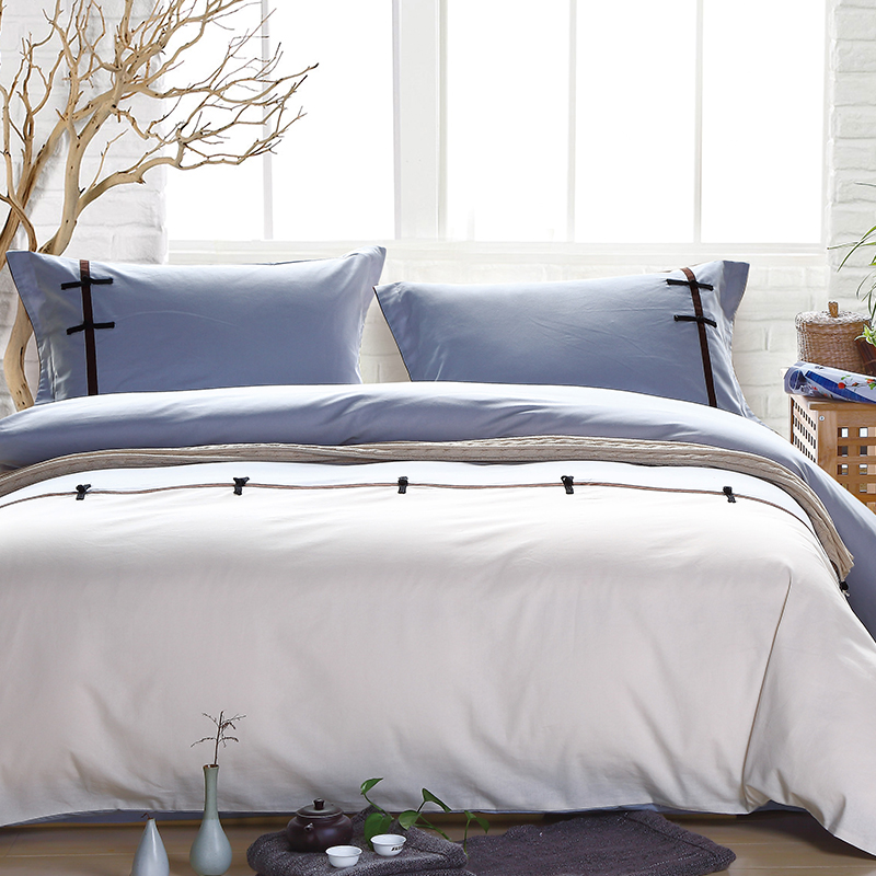 八月藏品蘭質蕙心棉麻四件套簡約中式拼接亞麻1.5m1.8m床上用品