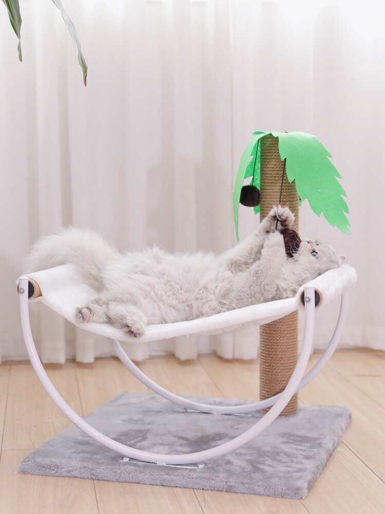 1、趣味無窮:趣味的沙灘床造型,懸掛的小吊球吸引貓咪抓撓。 大底盤,穩如泰山防止側翻。 |