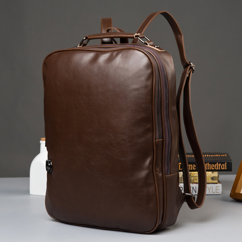 / 新款韓版雙肩包男士文件電腦背包潮流皮質鎖頭雙肩包電腦包