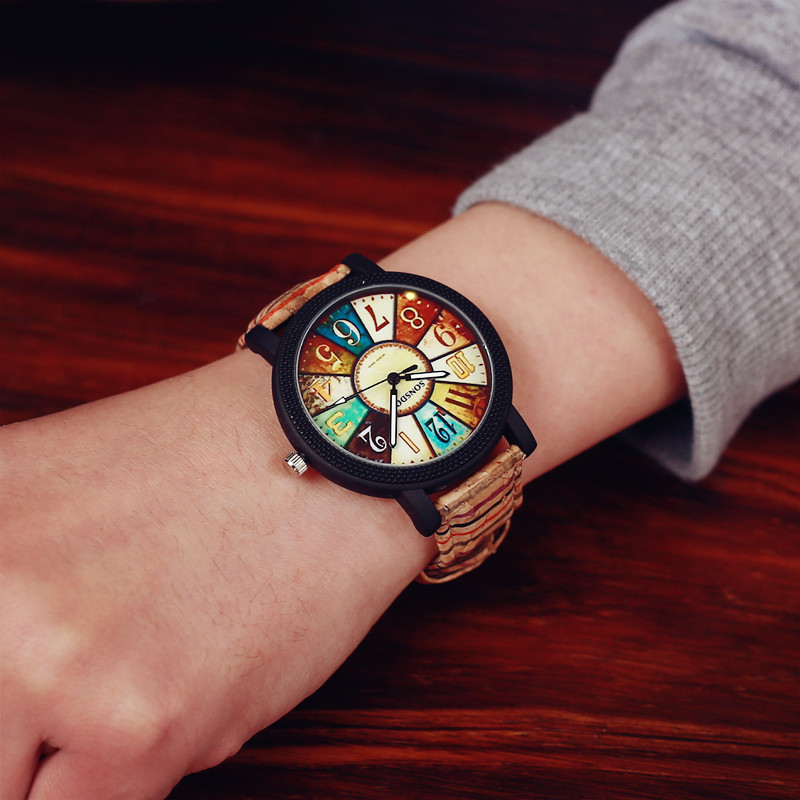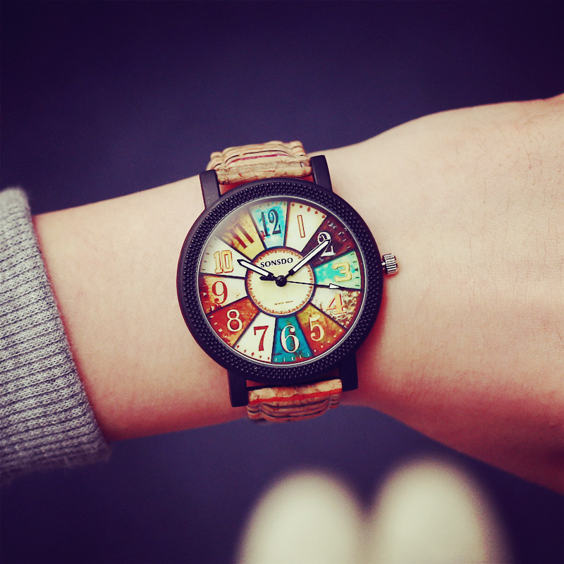 韓版復古木紋簡約時尚休閑小表盤特色森系森女學生石英情侶手表男