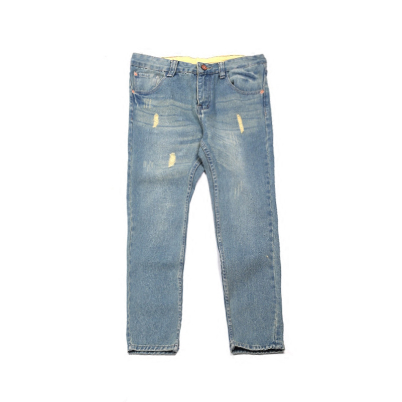 原創新品破洞貓須潮男日系小直腳牛仔褲韓版九分褲