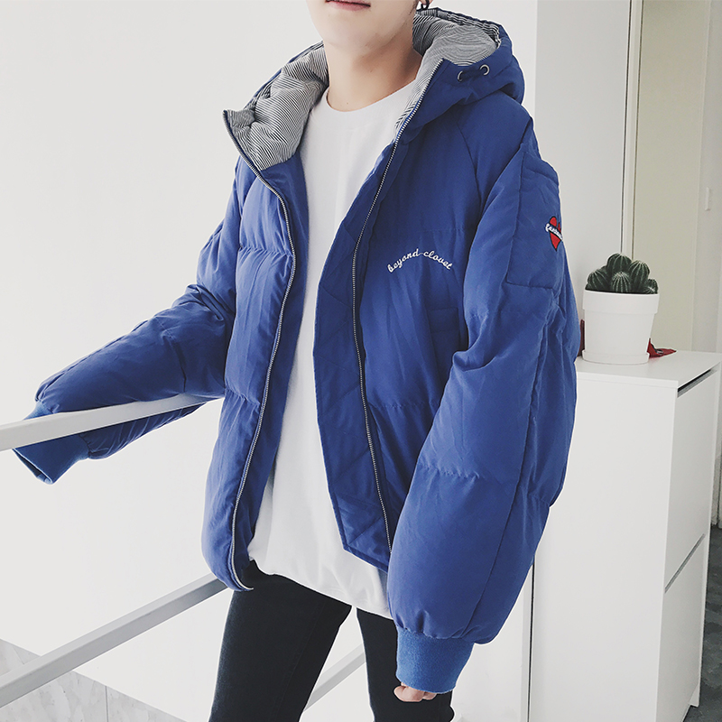 新款男裝愛心刺繡寬松連帽男士韓版休閑棉衣外套