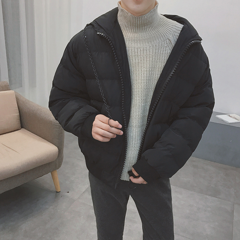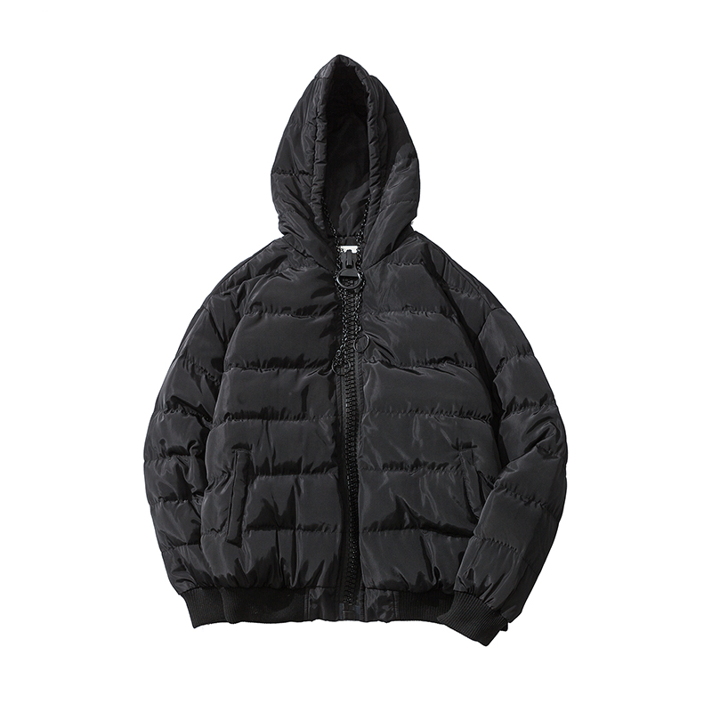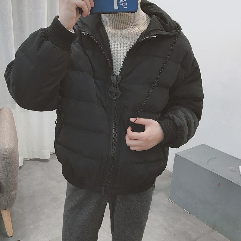 / 男裝港系寬松鐵鏈裝飾連帽棉服短款男士保暖棉衣