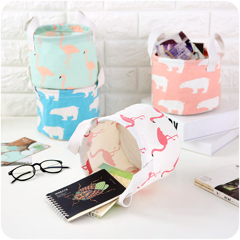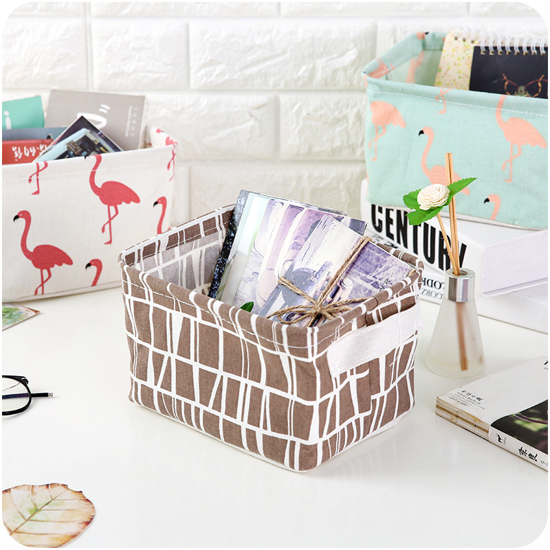 / 布藝收納籃 帶提手清新印花棉麻桌面雜物收納筐小衣物辦公收納籃