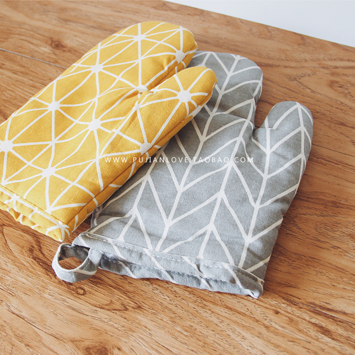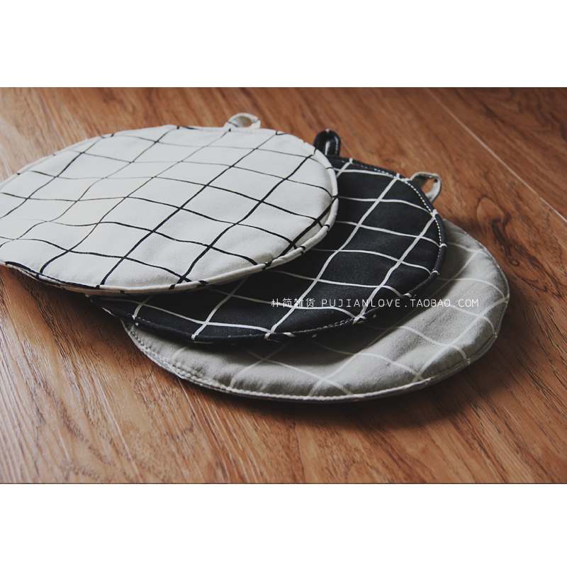 樸簡 日式加厚棉麻黑白布藝微波爐隔熱手套鍋墊 北歐風格子餐墊