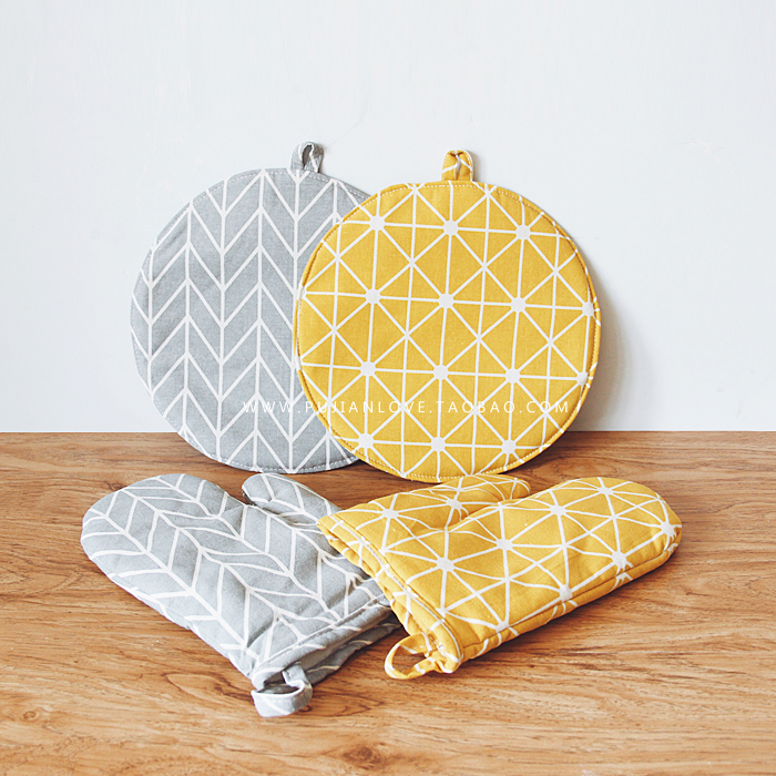 / 樸簡 日式加厚棉麻黑白布藝微波爐隔熱手套鍋墊 北歐風格子餐墊