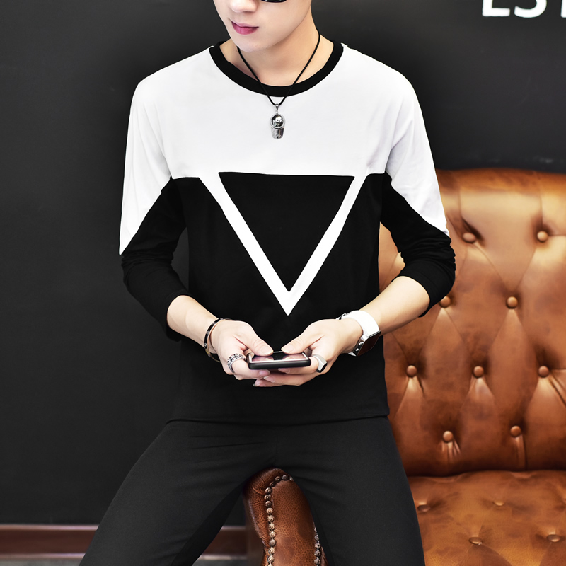 / 2017秋裝新款潮流休閑時尚 圓領長袖棉麻T恤大碼男