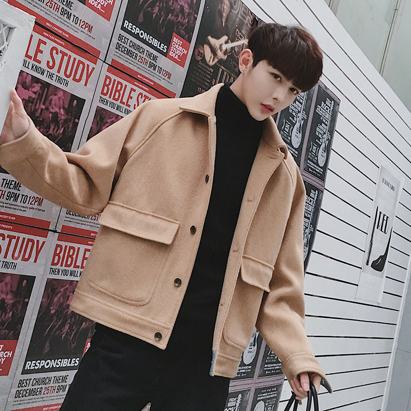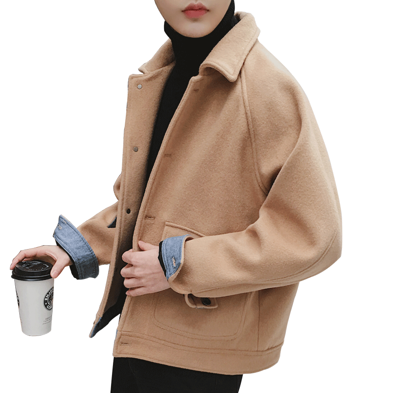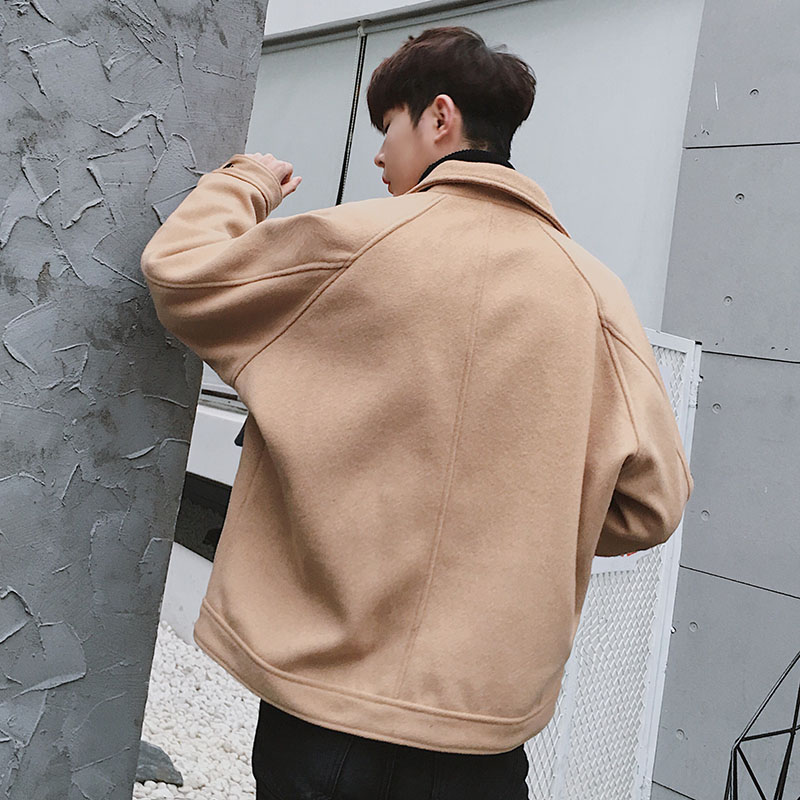 文藝男女店冬季男士外套韓版潮流毛呢大衣寬松短款風衣秋季衣服男
