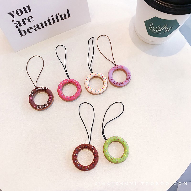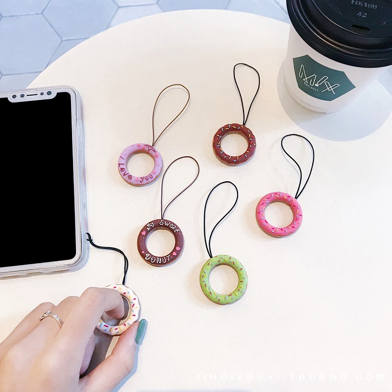 / 日韓國可愛卡通甜甜圈指環掛繩圈圈掛飾硅膠防摔防滑通用手機掛件