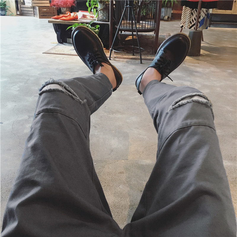 / 春季新款韓版破洞修身小腳哈倫男士青年男休閑褲