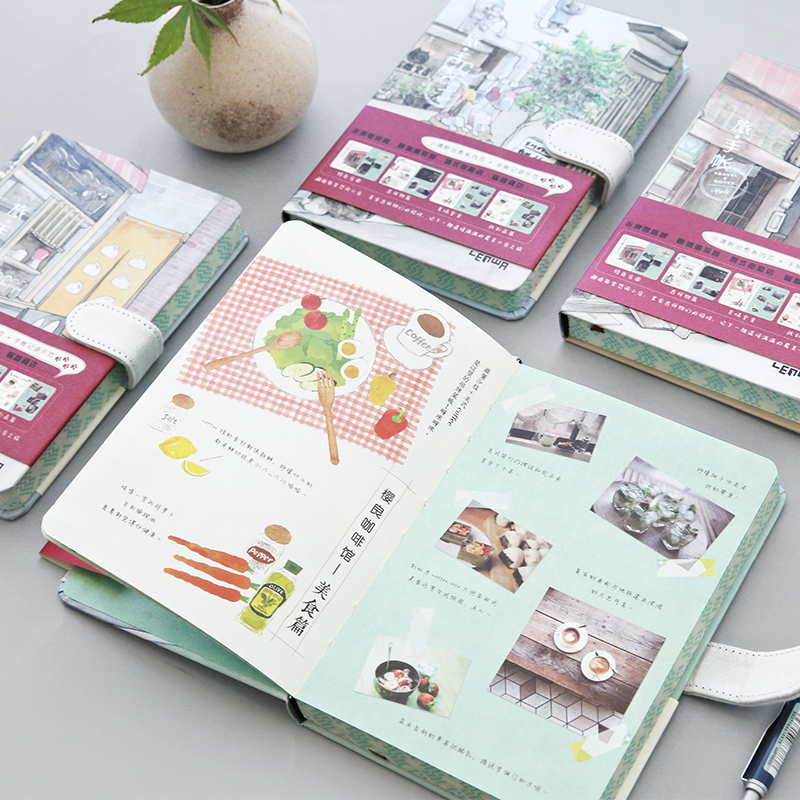 云木雜貨 手帳本套裝禮盒裝女生小清新手賬本磁扣本彩頁插畫本子