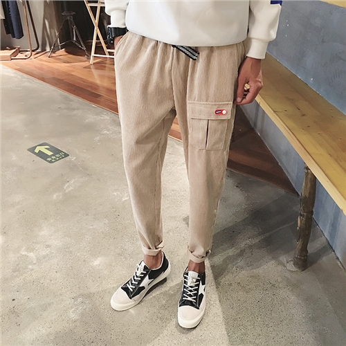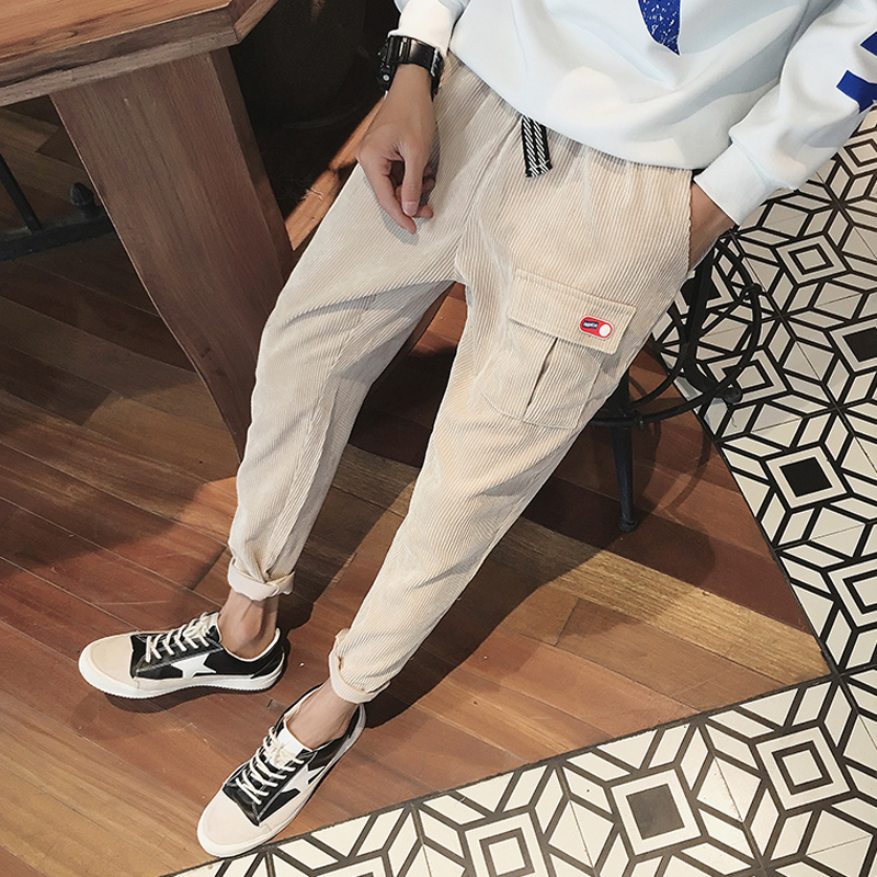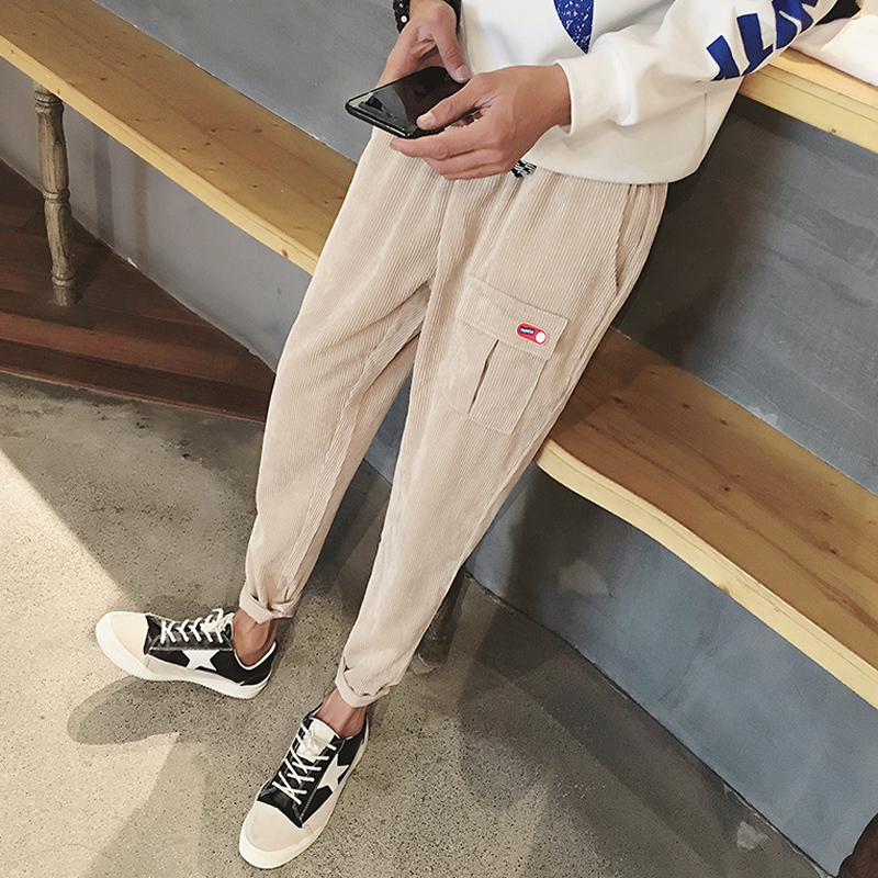 / 秋季新款港風日系燈芯絨錐形修身男士九分小腳褲