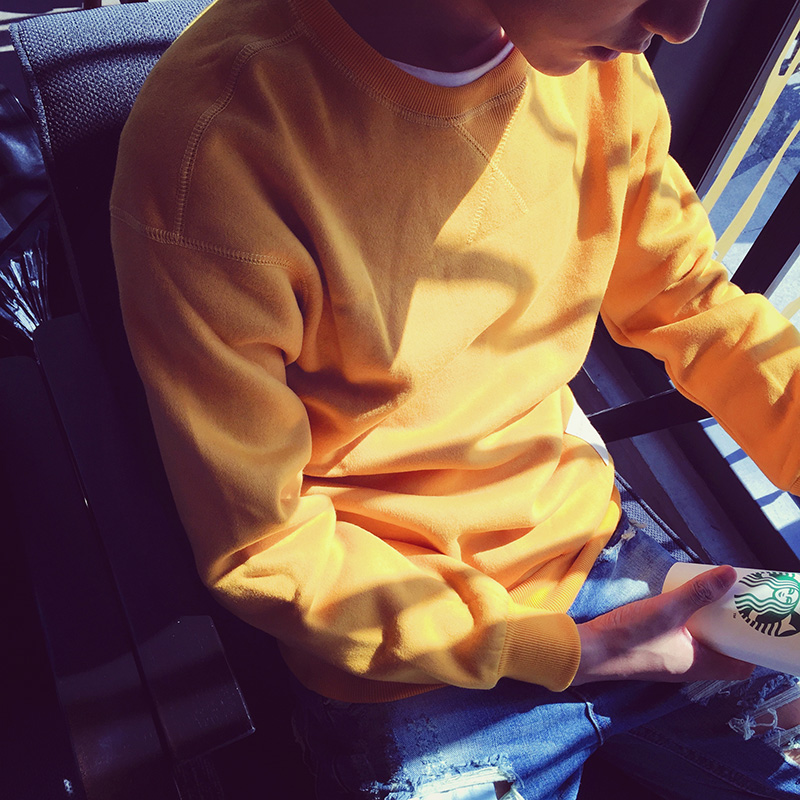 / 新款男裝韓版純色抓絨加厚長袖情侶男女打底衫衛衣
