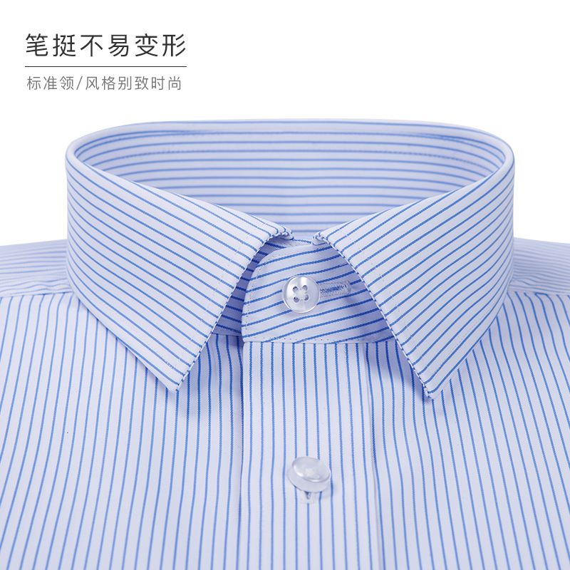 / 深海夏季薄款冰絲免燙抗皺襯衫男條紋襯衣短袖男士寸商務休閑修身
