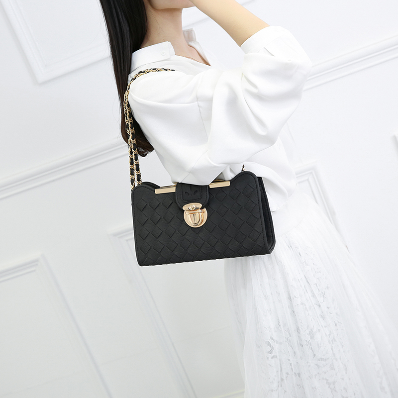包包新款韓版潮夏季小包斜挎包女百搭港風編織鏈條單肩包女包