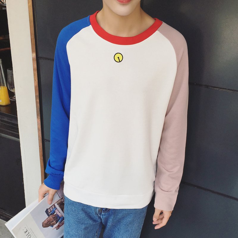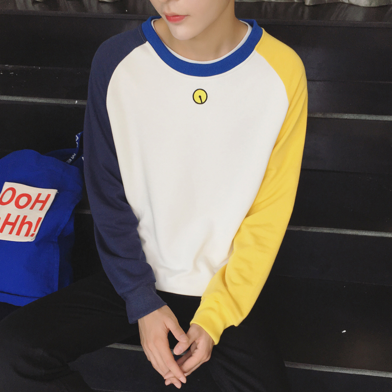 / 秋季新款韓版插肩袖圓領男士小清新長袖T恤打底衫