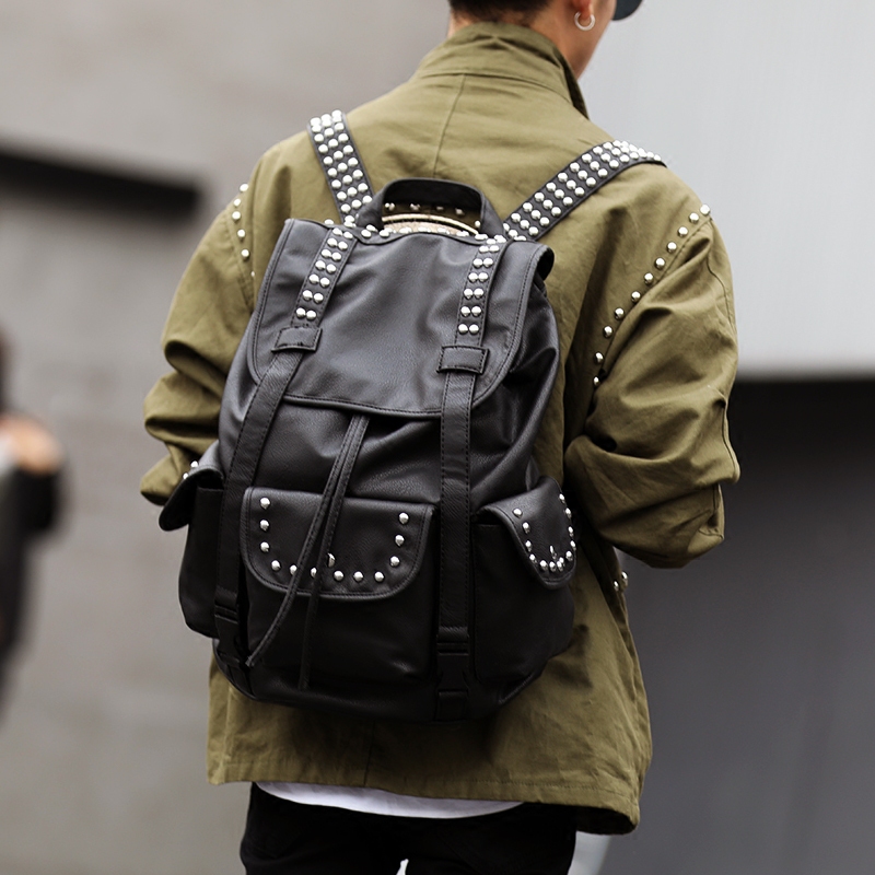 / 韓版雙肩包英倫風街頭潮流背包朋克鉚釘雙肩包書包旅行大背包男包