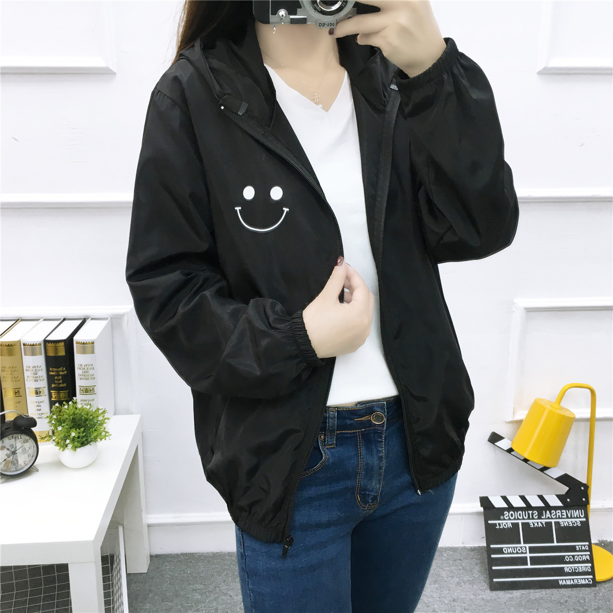 春秋季原宿風bf韓版潮百搭寬松顯瘦開衫中長款防曬衣外套女夏學生