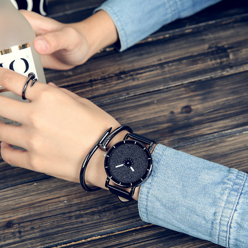韓國情侶手表一對韓版潮流時尚中學生女表簡約星空大表盤皮帶男表