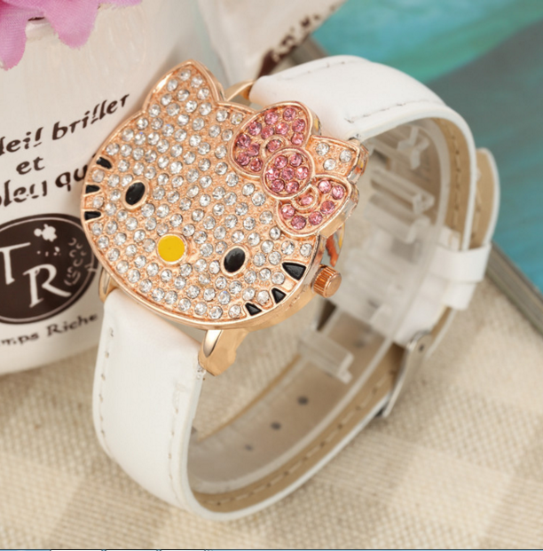 防水兒童手表女孩翻蓋水鉆石英表韓版中小學生可愛卡通KT貓女童表