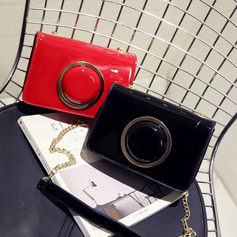 / 包包女新款潮漆皮小方包相機包韓版鏈條單肩女包百搭斜挎小包