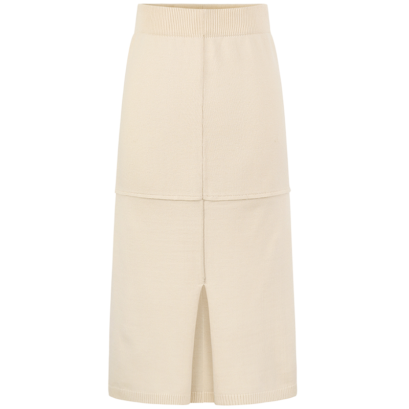 MG小象高腰針織半身裙女冬中長款寬松2018秋冬新款開叉a字裙子潮