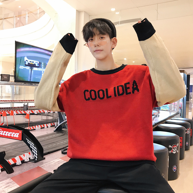 / 文藝男女店秋季圓領針織衫男士韓版潮流套頭秋裝寬松毛衣網紅外套