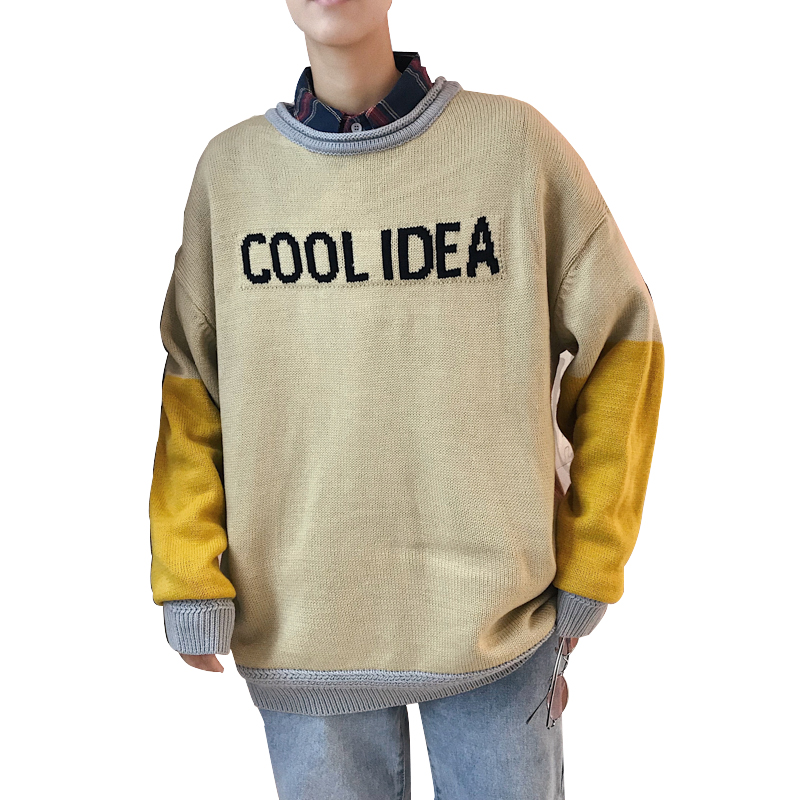 文藝男女店秋季圓領針織衫男士韓版潮流套頭秋裝寬松毛衣網紅外套