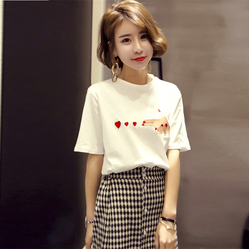 / 夏季搭配背帶褲短裙新款圓領顯瘦打底衫寬松T恤女潮學生短袖上衣