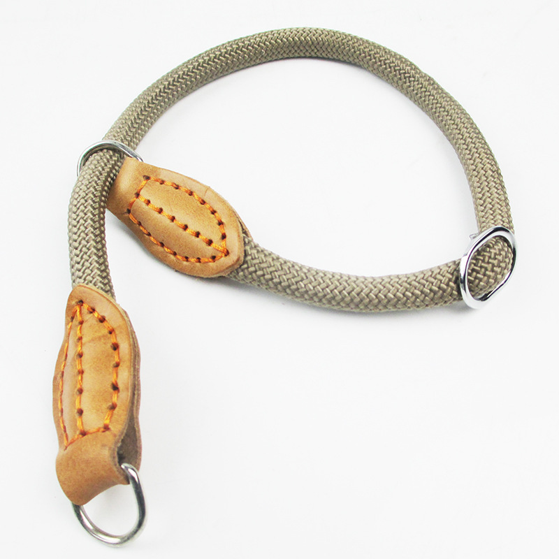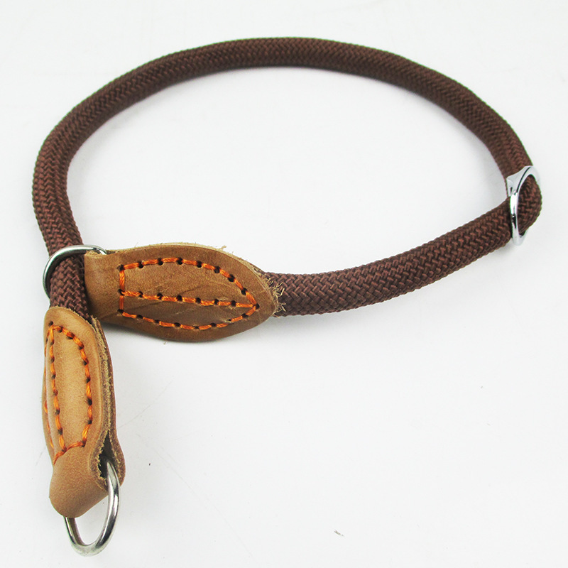 外貿出口款1.2尼龍脖圈牛皮件 手工縫尼龍P鏈P繩 1.0尼龍項圈可調