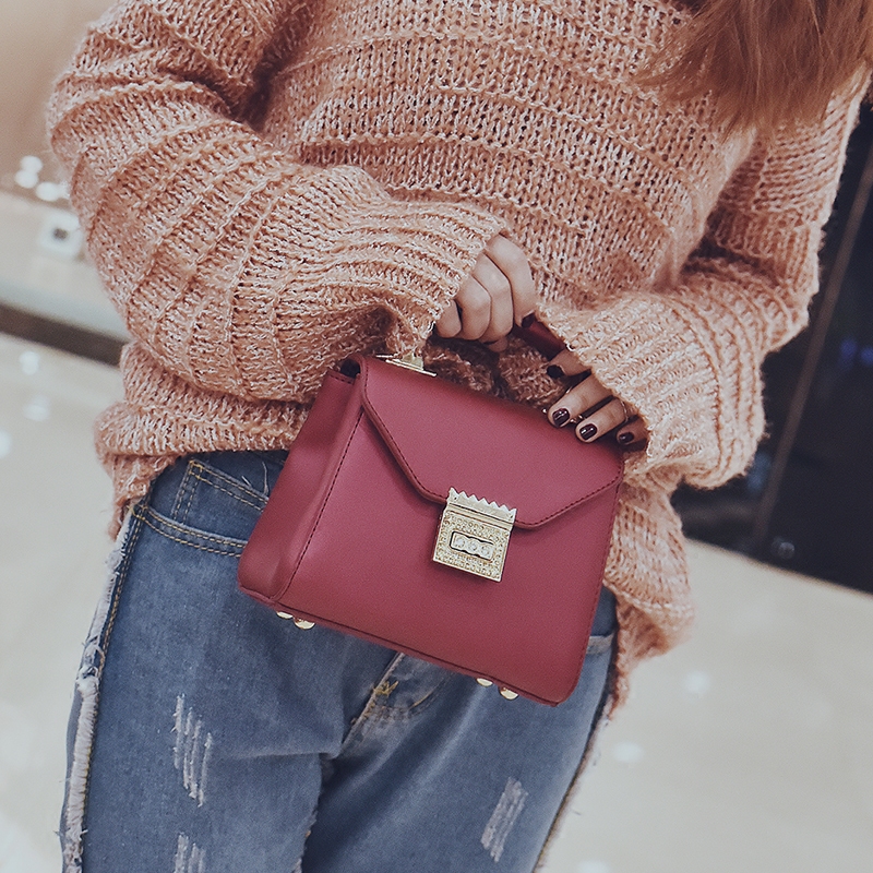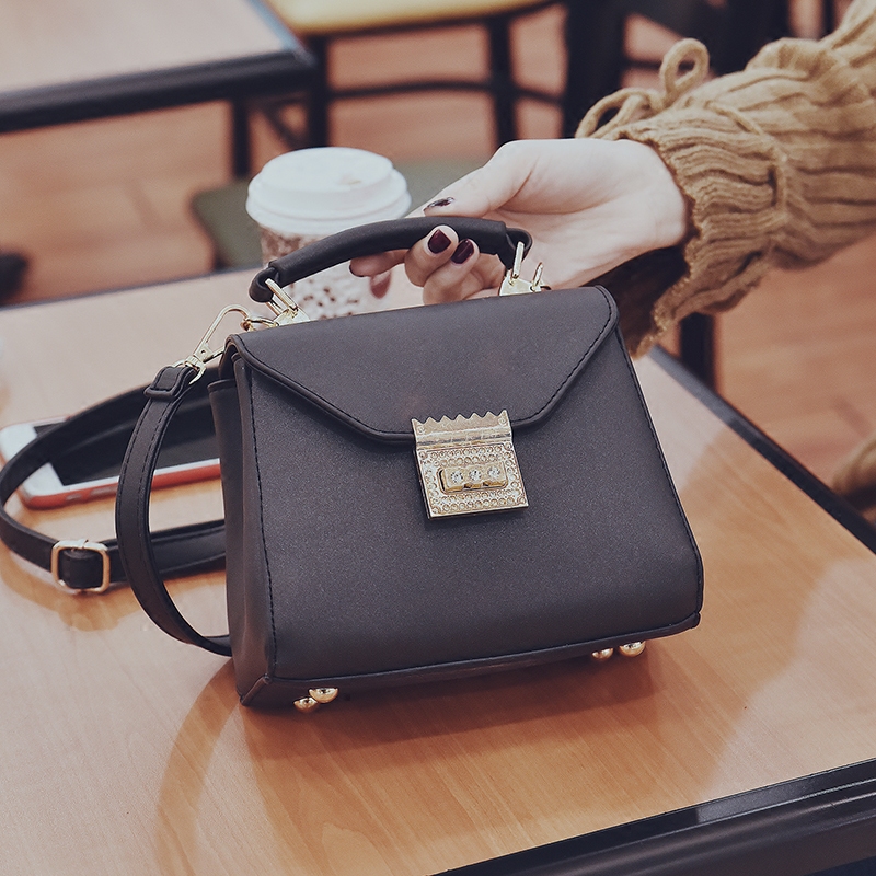 新款包包女百搭鎖扣迷你小方包手提女包韓版時尚單肩斜挎小包