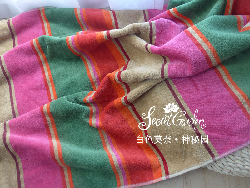 關于她:愜意休閑時光……出口原單產品,此款質地手感柔軟,純棉吸汗,能為浴室增添潔凈和舒適,值得一提的是此款配色相當明艷動人,獨特氣質,值得嘗試
