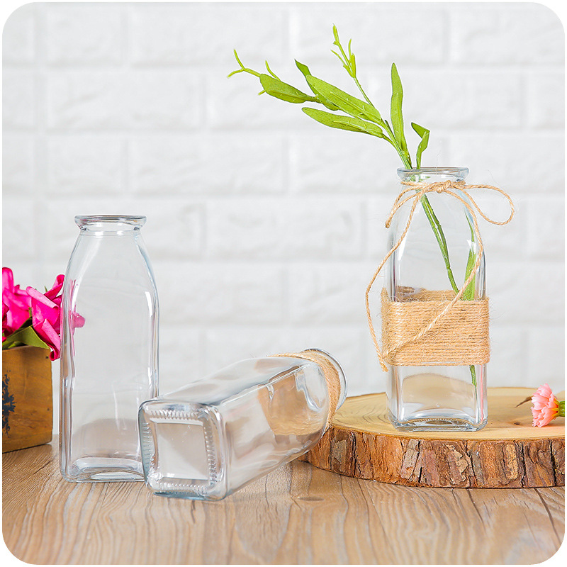 / 玻璃花瓶透明方形許愿玻璃花瓶綠植插花直身居家辦公裝飾小口花器