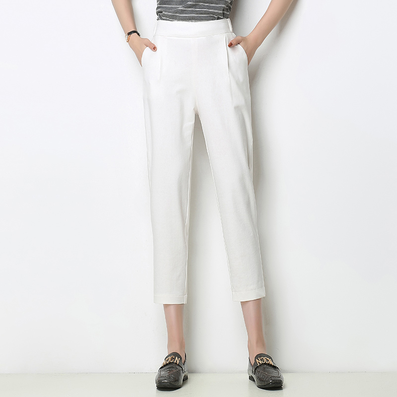/ 七分褲女哈倫褲春夏季新款寬松大碼黑色顯瘦小腳休閑女褲子西裝褲