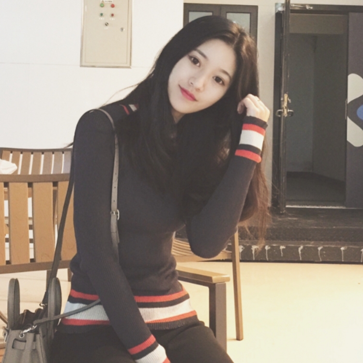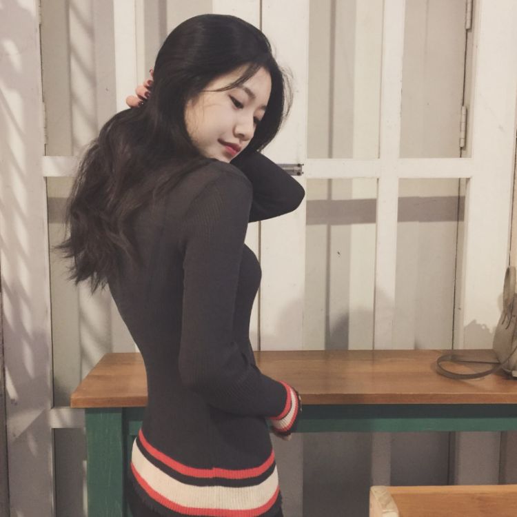 / 韓國chic秋冬百搭炭灰色撞色修身套頭螺紋針織衫長袖打底衫女